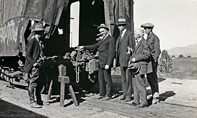THE BROTHERS HID out in a cabin in the woods for about a week and a half, waiting for things to settle down a bit. While they were hiding out there, they noticed an unusual amount of activity in the air; in 1923, very few airplanes were actually in operation, but it suddenly seemed like every plane on the West Coast was flying low over the Siskiyous. But they didn’t figure out what those planes were doing until Roy hopped a freight train to Ashland to pick up some supplies. Sitting in a diner with a cup of coffee and a newspaper, he looked down and saw a photograph of himself and his brothers there, on the front page. The manhunt was on. It had been on since a few days after the robbery, when authorities had turned to a university professor for help in figuring out who the robbers had been. And it was in the course of that manhunt that the modern science of forensic detective work was born. We’ll talk about all that in Part 2 of this story, next.