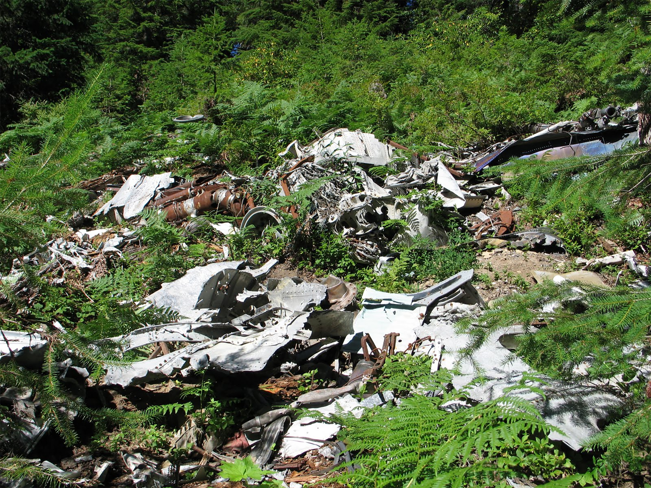 The remote wooded slope south of Welches, where West Coast Airlines Flight 956 crashed, is still littered with debris today, much of it melted or distorted by the fireball. (Image: Ken Potter/ wreckchasinginoregon.blogspot.com)