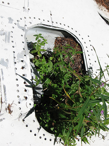 Forest plants grow up through the window opening of Flight 956. (Image: Ken Potter/ wreckchasinginoregon.blogspot.com)