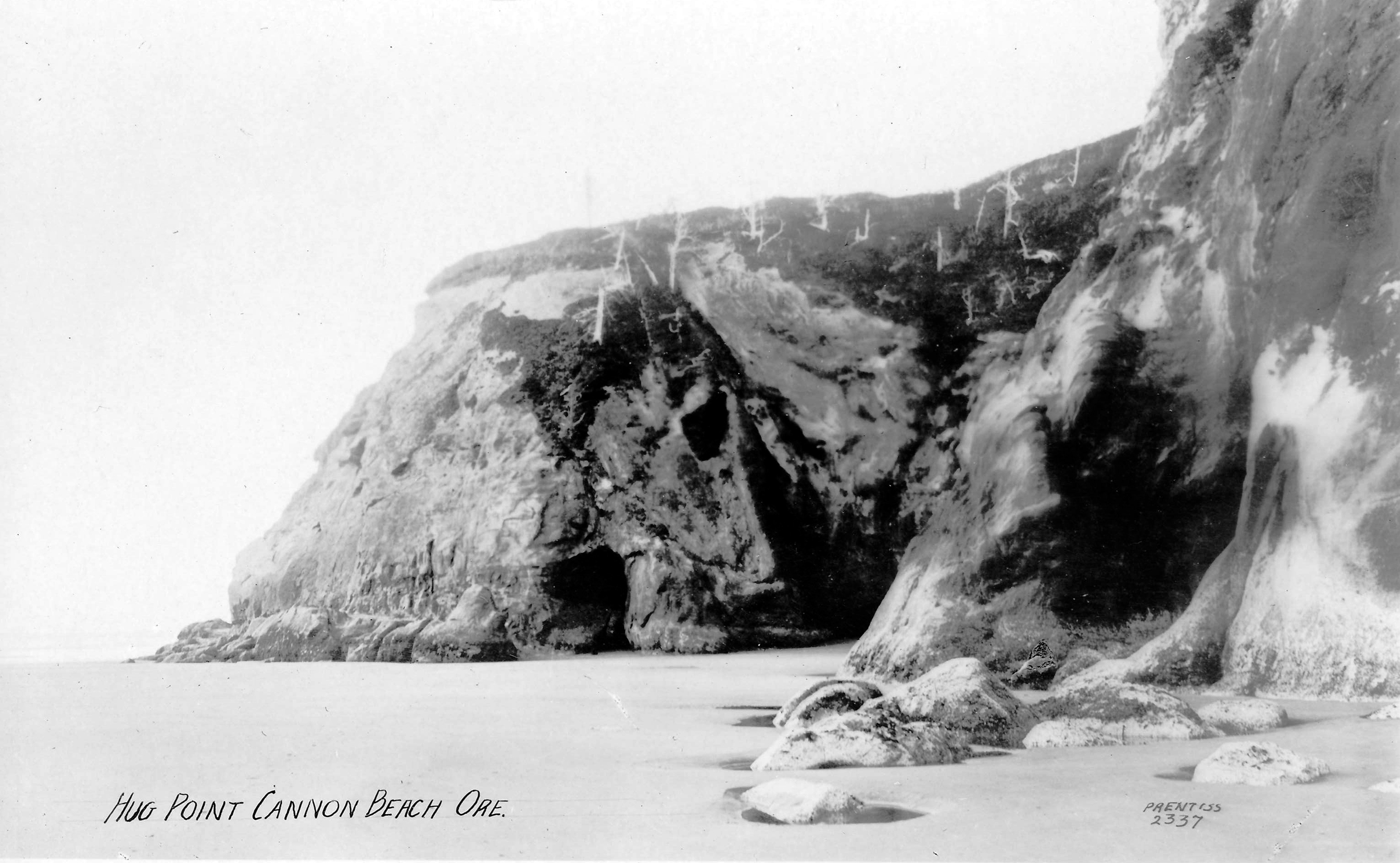 And yes, everyone used the beach to get back and forth, from Arch Cape to Cannon Beach and from Seaside to Astoria. In most cases there were no other roads. Inland, especially in the south part of the county, road building was very difficult and expensive, because of thick forests and steep rocky terrain; so everyone used the beach to get from place to place. And Hug Point, well, it was just really inconveniently located, sticking out across the whole beach and towering several hundred feet high.