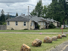 In the town of Adair Village today, a few of the older houses as well as businesses are still housed in old Camp Adair houses — either adopted as they stood, or purchased from a salvage company and moved to the site. Along William R. Carr Avenue, you can see two of the old barracks buildings that were purchased in 2010 for the Camp Adair Interpretive Center.