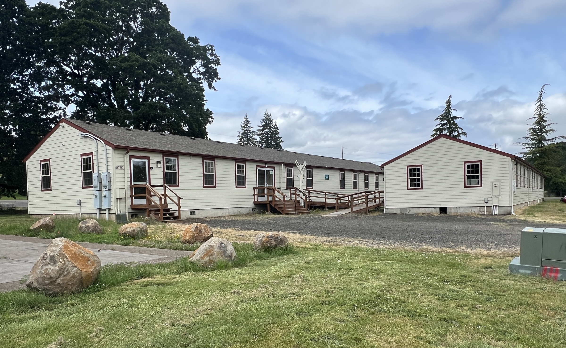 Two former barracks buildings from Camp Adair, which are being renovated as the Adair Interpretive Center in Adair Village. (Staff photo)