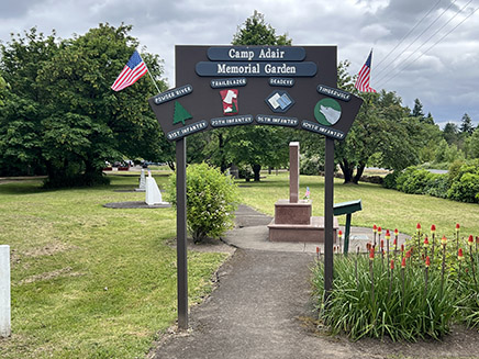 The entrance gateway to the Camp Adair Memorial Garden, dedicated to members of the Infantry divisions trained at Camp Adair who were killed or wounded in combat. (Staff photo)