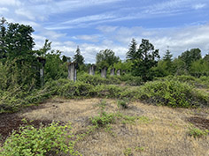 The ruins of the Camp Adair Fieldhouse, which contained two full-size basketball courts. (Staff photo)