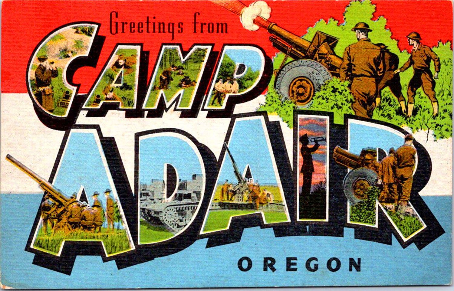 Thousands of these postcards were sold to soldiers training at Camp Adair for letters home. (Image: Postcard)