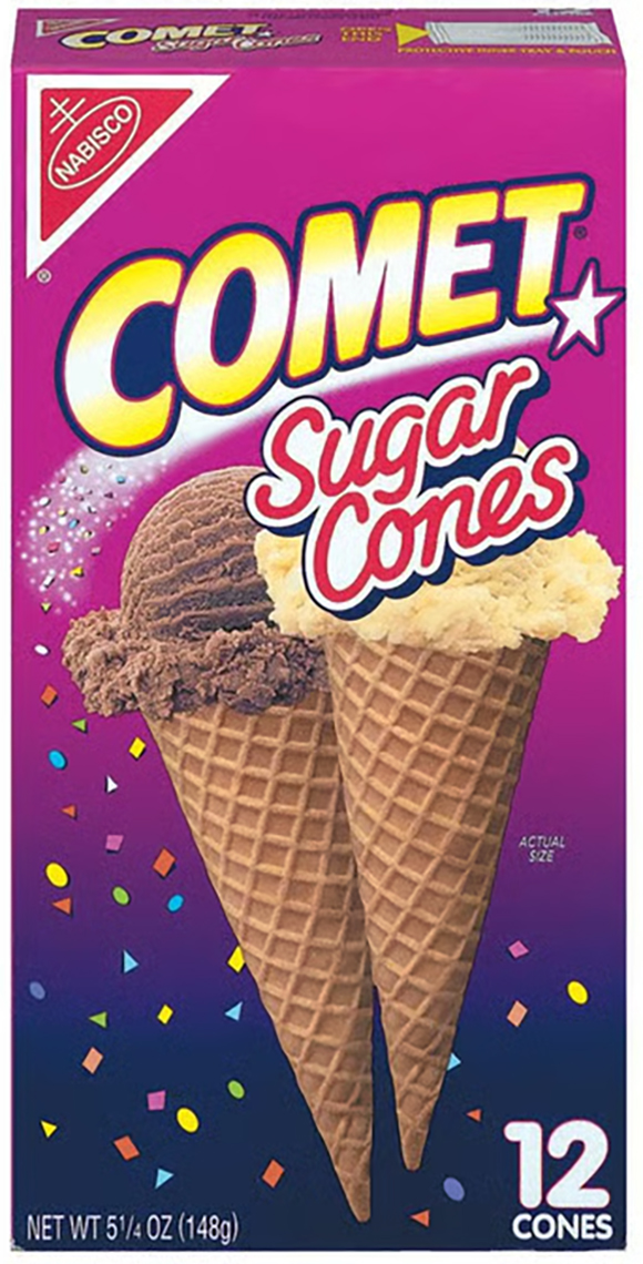 A box of Nabisco’s Comet ice cream cones. Comet sugar cones are reportedly still made with Bruckman’s original recipe. (Image: Nabisco)
