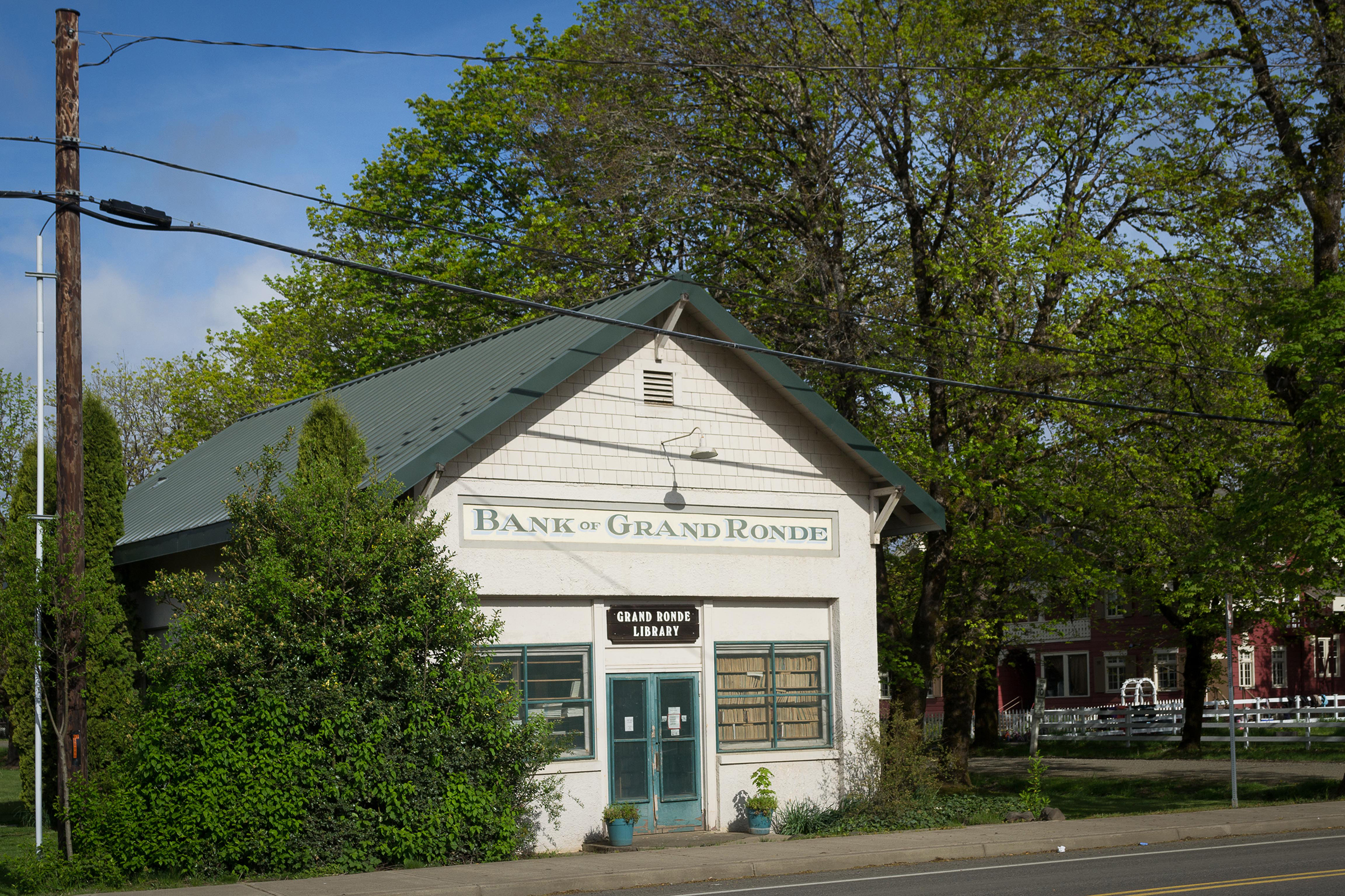 The Grand Ronde Public Library as it appeared on a summer day in 2013. (Image: Visitor7/Wikimedia Commons)