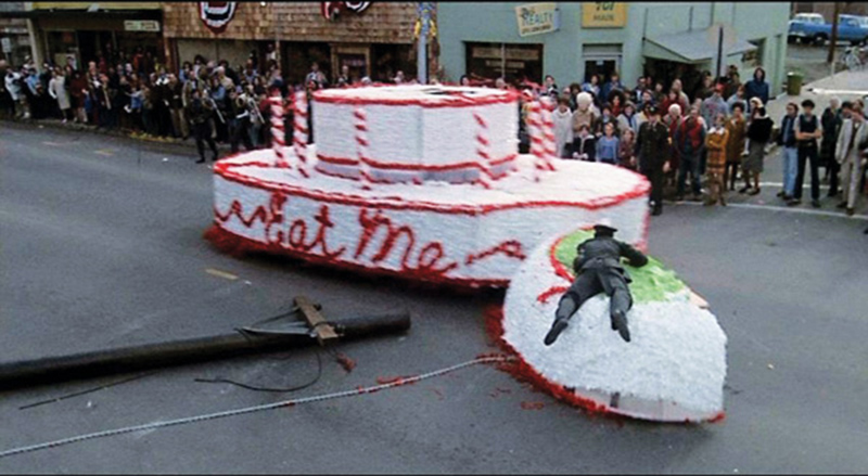 A screen capture from Animal House, from the parade scene in downtown