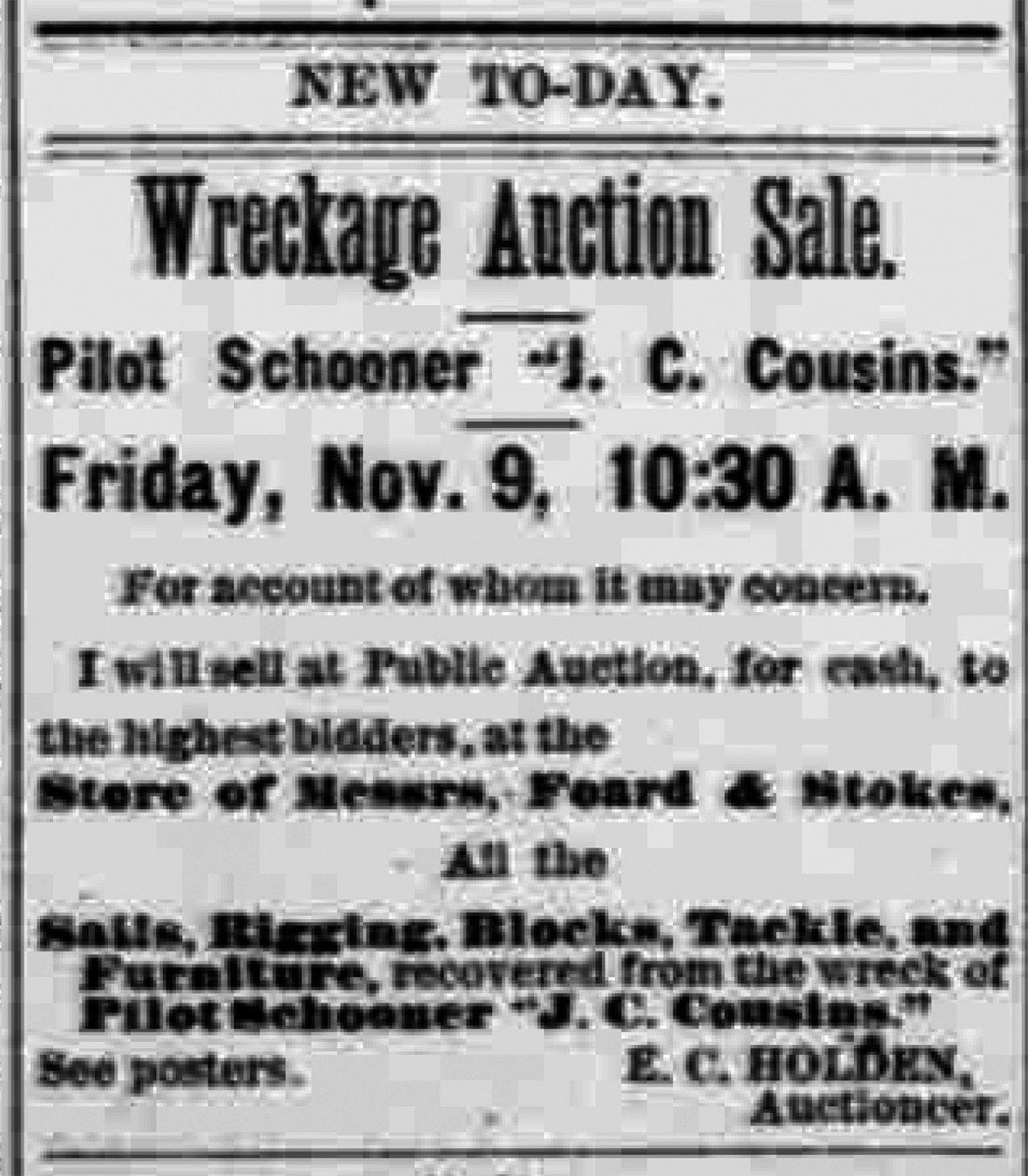 But late that afternoon, things had started to look just a little bit odd. The crew of the tugboat Mary Taylor, coming across the bar, saw the J.C. Cousins on the move, sails trimmed for a close reach seaward across the southwest wind. That, in itself, wasn’t too unusual, although it wasn’t clear why it was on the move; there were no ships in sight.