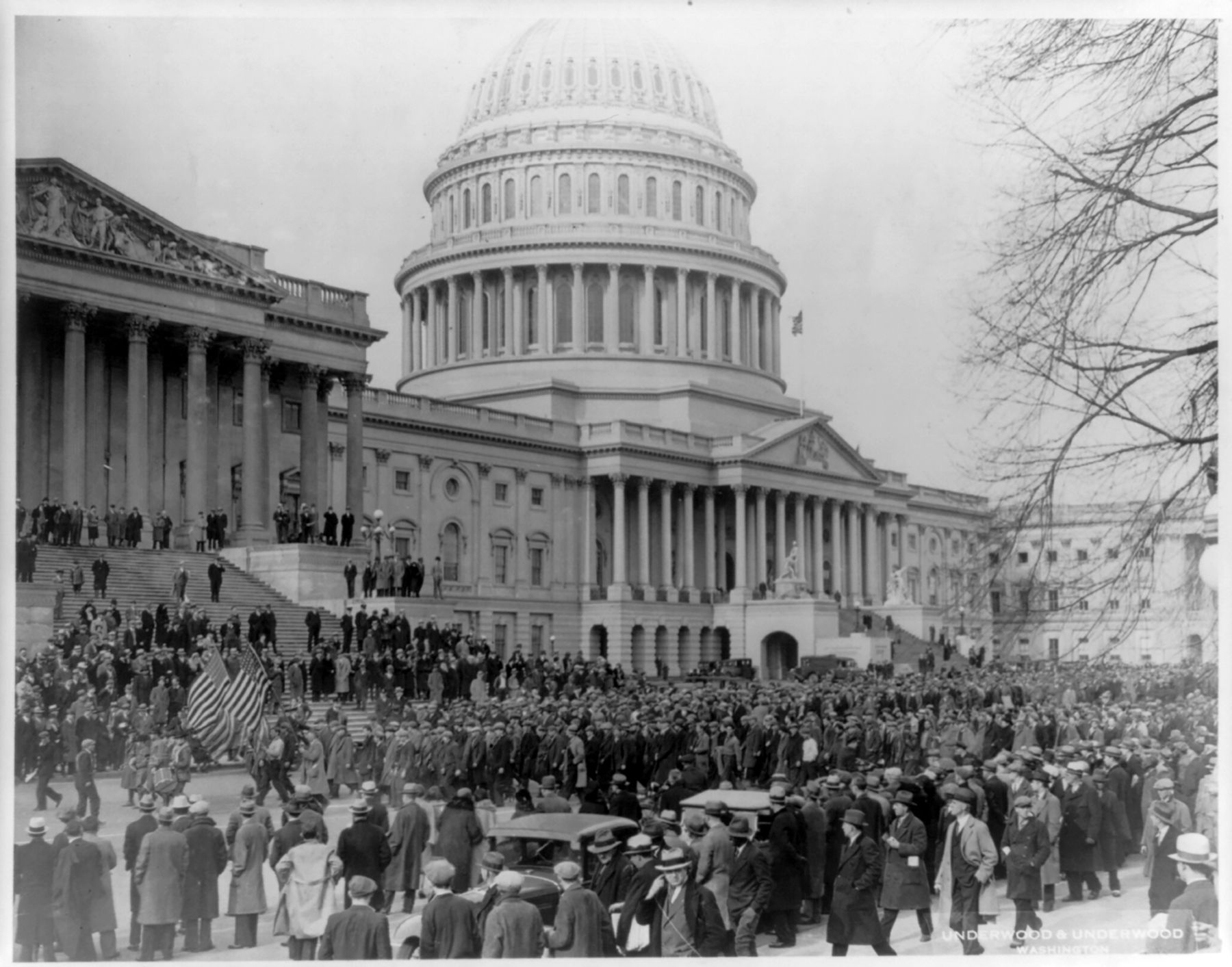 A Members of the Bonus Expeditionary Force protest at the Capitol Building in 1932. (Image: Library of Congress)